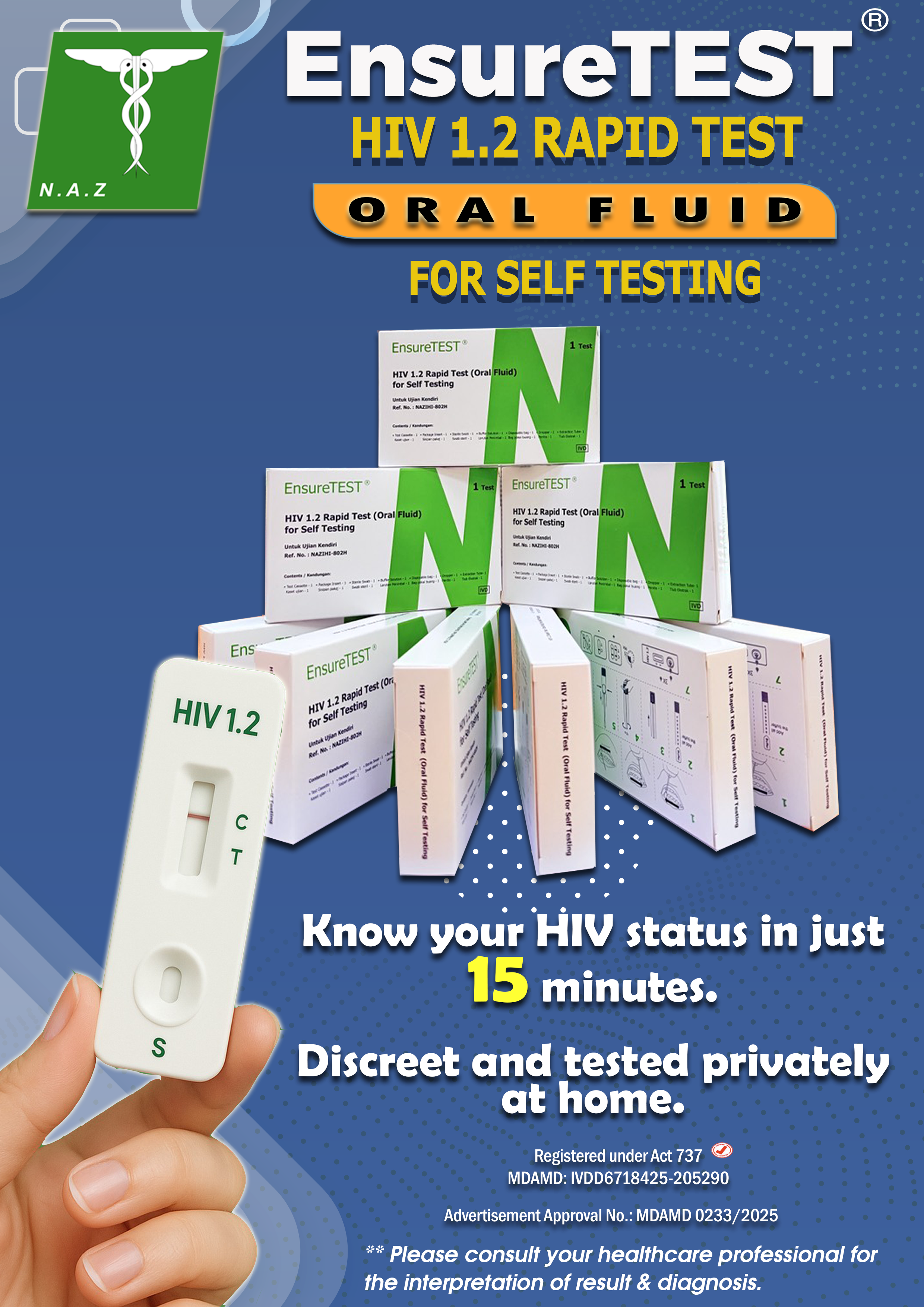 - HIV 1.2 RAPID TEST CASSETTE (ORAL FLUID) FOR SELF TESTING