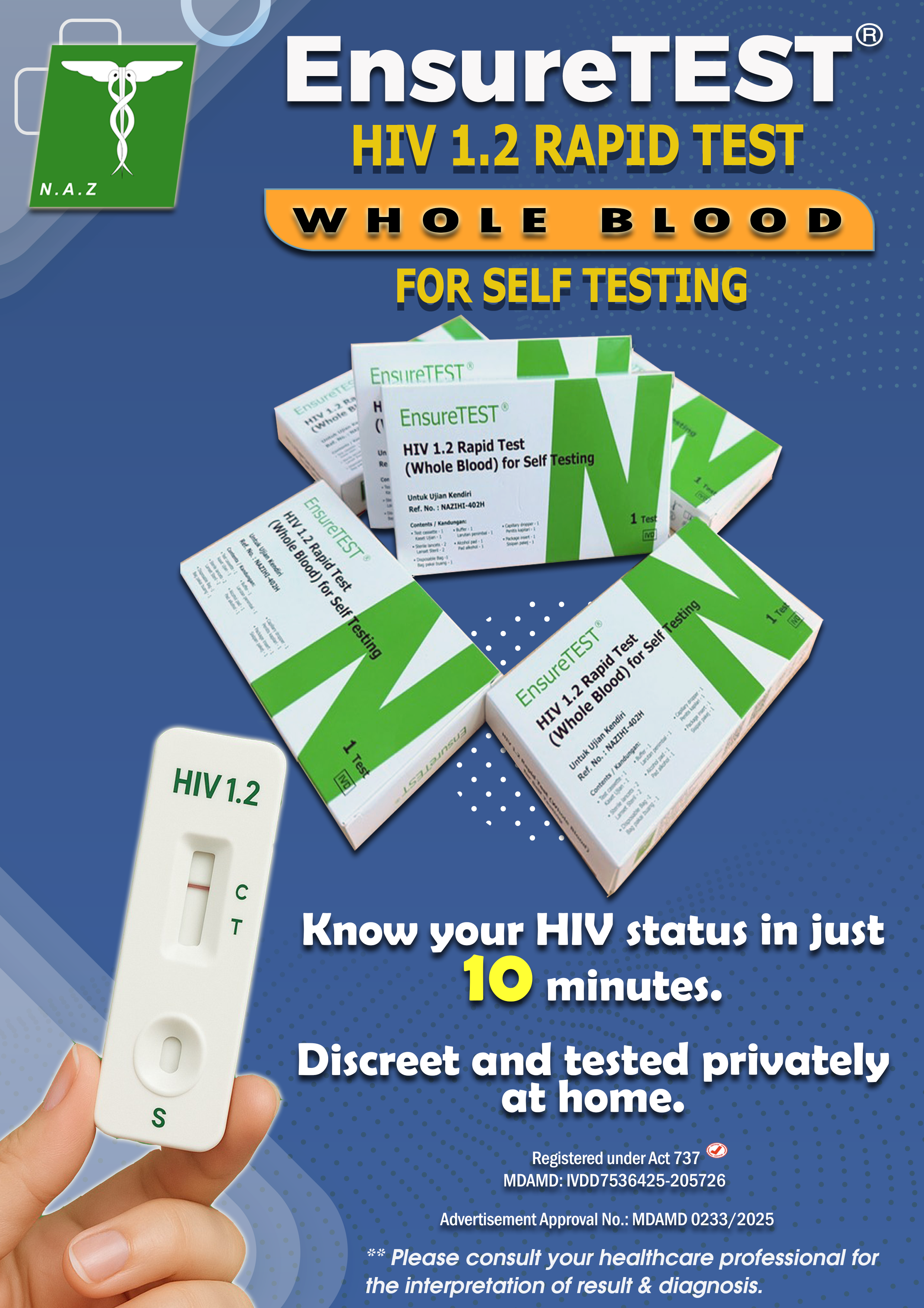 - HIV 1.2 RAPID TEST CASSETTE (WHOLE BLOOD/SERUM/PLASMA) FOR SELF TESTING